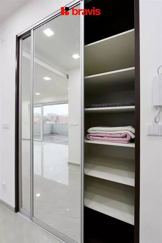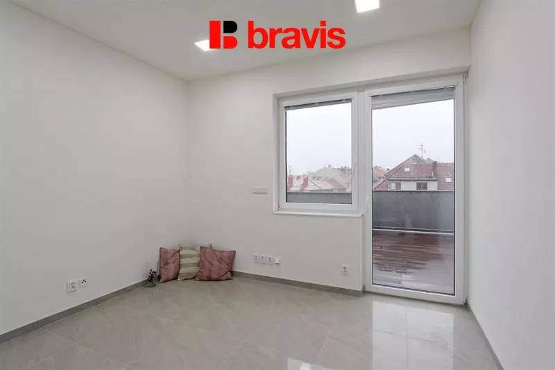 Byt se nachází v 6. patře s výtahem přímo do bytu, k dispozici prostorná terasa s úžasnými výhledy na celé Brno.
